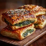 Addictive Spinach Stuffed Pastry combines flaky puff pastry with a savory filling of sautéed spinach, onions, garlic, and cheeses for a delicious Mediterranean-inspired appetizer that’s perfect for parties or a flavorful snack.