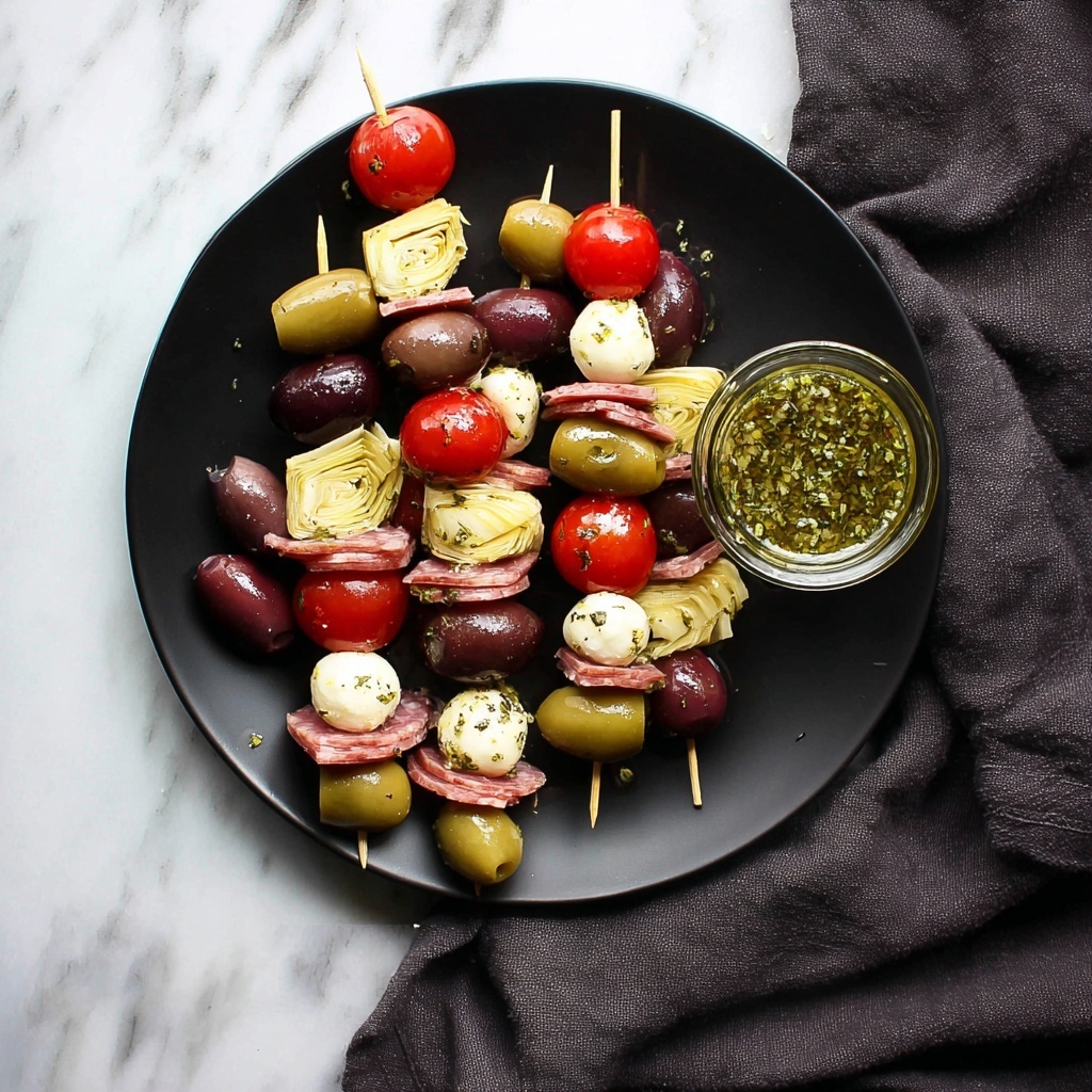 To elevate your Antipasto Skewers Recipe, sprinkle freshly chopped parsley or basil leaves over the platter for a fresh herbal note and a beautiful green contrast. A light dusting of cracked black pepper or a drizzle of extra virgin olive oil can add another layer of flavor and shine.