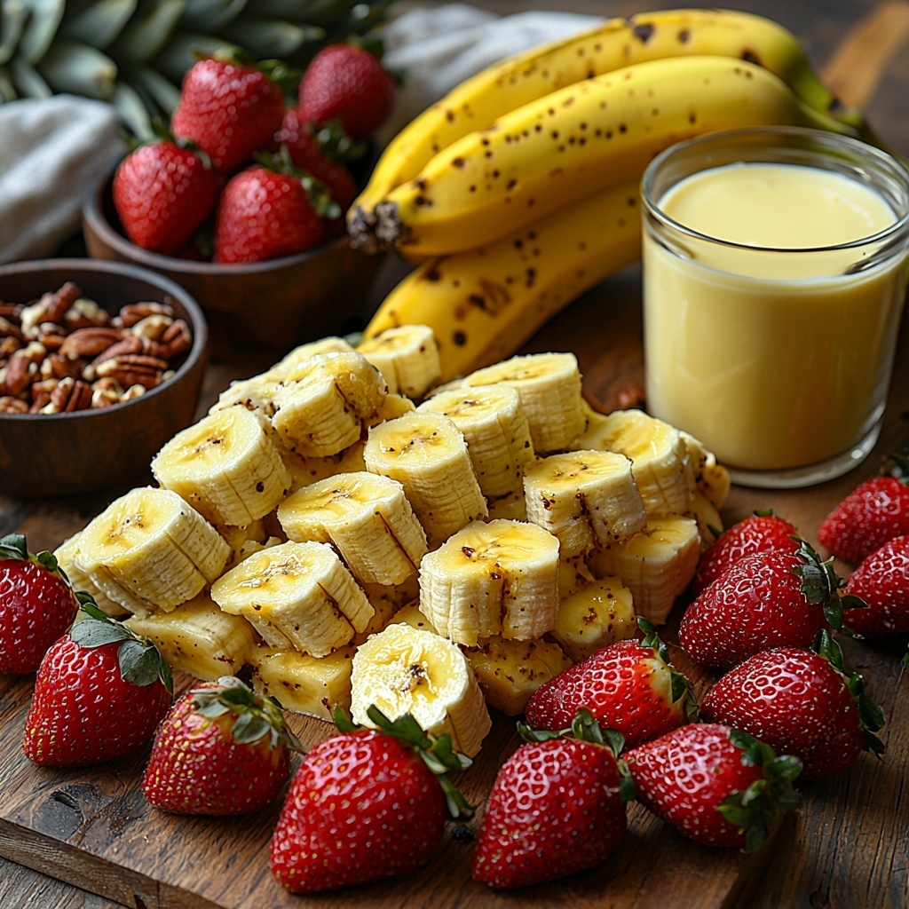 - Layer Fruit: In a baking dish, arrange layers of sliced bananas, then add the drained crushed pineapple evenly, followed by the sliced strawberries to create the fruit base of your dessert.