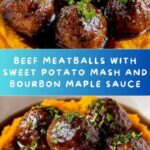 - Assemble and Serve: Plate the sweet potato mash, top with baked beef meatballs, and generously drizzle with the bourbon maple pan sauce. Garnish with additional parsley or Parmesan cheese if desired. Serve warm for a comforting meal.