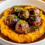 If you’re craving a dish that really warms the soul and impresses with layered flavors, this Beef Meatballs with Sweet Potato Mash & Bourbon Maple Pan Sauce Recipe is an absolute must-try. It combines juicy, tender beef meatballs with the comforting sweetness of smooth sweet potato mash, all tied together by a rich, slightly smoky bourbon maple pan sauce that elevates every bite. Whether you’re cooking for a cozy family dinner or inviting friends over, this recipe feels like a big, flavorful hug on a plate.