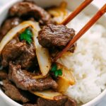 - Combine and Finish: Return the seared beef to the skillet with the onions and aromatics. Add rice vinegar, water, sesame oil, and black pepper. Toss everything together and cook for another 1 to 2 minutes, allowing the sauce to thicken slightly and coat the beef and onions beautifully.