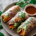 For a fun twist, slice your spring rolls diagonally and arrange them fan-like on a large platter for sharing. You can also set up a spring roll making station with all fillings and sauce, letting guests customize their rolls. Or wrap each roll individually in parchment and tie with a thin herb or green onion strand for a chic, gift-like presentation perfect for parties.