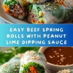 Delicious and fresh Beef Spring Rolls served with a tangy Peanut Lime Sauce. These light and flavorful appetizers combine seasoned ground beef with crisp vegetables and fresh herbs wrapped in delicate rice paper, perfect for a quick and healthy snack or party treat.