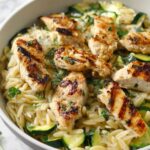 This creamy Boursin Orzo with Chicken Recipe is hearty enough to stand alone, but for a well-rounded dinner, pair it with a crisp green salad or steamed seasonal vegetables. Roasted asparagus or lemon-garlic green beans complement the dish’s herbaceous, cheesy qualities beautifully.