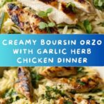 A creamy and flavorful one-pan Boursin Orzo with tender chicken pieces, garlic and herb cheeses, spinach, and Parmesan, perfect for a quick and comforting weeknight dinner.