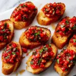 For a party or casual gathering, try serving the tomato mixture in a large bowl with toasted baguette slices arranged on the side, letting guests create their own bites. Alternatively, present each bruschetta on a colorful platter garnished with fresh herbs for a rustic yet elegant look. Using a wooden serving board adds a charming, authentic touch that invites everyone to dig in.