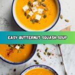 A warming and comforting Butternut Squash and Pumpkin Soup featuring a blend of roasted butternut squash, creamy pumpkin purée, and fragrant spices, finished with coconut milk for a smooth, vegan, and gluten-free autumn-inspired dish.