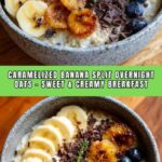 Though freezing overnight oats is possible, it’s not recommended for this particular recipe because the texture of fresh fruits and caramelized bananas can be compromised. It’s best enjoyed fresh or refrigerated overnight before eating.