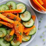 A refreshing Carrot and Cucumber Salad tossed in a flavorful and spicy Asian-inspired dressing made with miso paste, soy sauce, ginger, and a hint of lime zest. This light and crunchy salad is perfect as a side dish or a healthy snack.