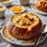 - Serve hot: Ladle the hot cheddar and cauliflower soup into each bread bowl. Garnish with extra shredded cheddar cheese or fresh herbs such as parsley. Serve immediately for a delightful presentation and comforting meal.