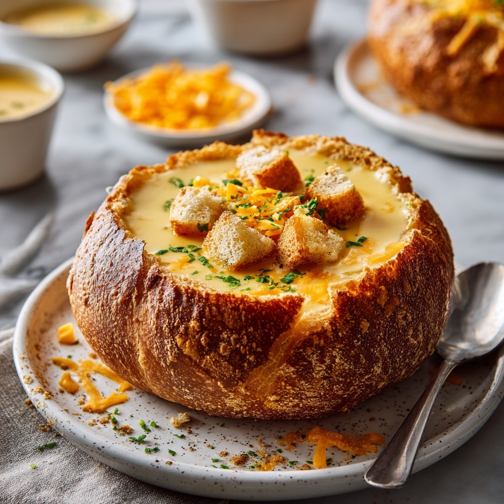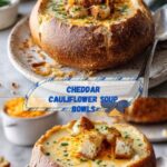 A comforting and creamy Cheddar & Cauliflower Soup served in charming mini bread bowls. This soup blends tender cauliflower with sharp cheddar cheese for a rich and flavorful experience, perfect for a cozy meal or entertaining guests.