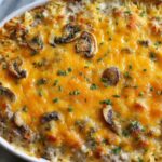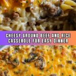 This Cheesy Ground Beef & Rice Casserole is a hearty, comforting dish that combines seasoned ground beef, fluffy rice, and melted cheddar cheese in a savory baked casserole. Featuring flavors of diced tomatoes with green chilies and a creamy mushroom soup base, this easy-to-make recipe is perfect for family dinners or meal prep.