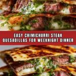 Top these quesadillas with fresh cilantro leaves, a squeeze of lime, or even thin slices of avocado. These garnishes add brightness and creaminess that perfectly complement the smoky steak and tangy chimichurri sauce.