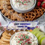 This festive Christmas Cookie Dough Dip is a creamy, sweet treat perfect for holiday gatherings. Combining the flavors of classic cookie dough with a creamy yogurt base, this no-bake dip is enhanced with colorful holiday sprinkles and served with graham crackers, fruit, or other dippers for a fun and delicious snack.