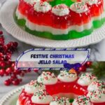 Christmas Jello Salad is a festive layered dessert featuring vibrant cherry and lime jello cubes combined with pineapple chunks and a creamy coconut milk gelatin layer. This refreshing, colorful salad is elegantly garnished with maraschino cherries, sliced strawberries, lime slices, and fresh mint, making it a perfect holiday treat that’s both visually appealing and delicious.