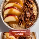 A comforting and nutritious Cinnamon Apple Oatmeal featuring creamy oats cooked with warm cinnamon and sweet maple syrup, topped with buttery caramelized apples and toasted walnuts for a deliciously textured breakfast or snack.