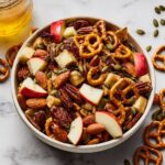 A crunchy and sweet Cinnamon Maple Trail Mix combining mixed nuts, mini pretzels, pumpkin seeds, and dried apples, all coated in a warm cinnamon and maple syrup glaze. Perfect for a healthy snack or on-the-go energy boost.