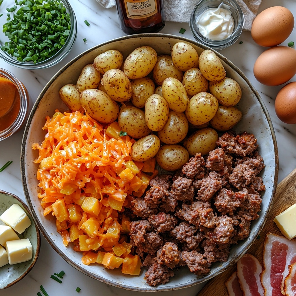 These ingredients may seem straightforward, but each one plays a critical role in building the texture, flavor, and overall personality of the Classic Comfort Loaded Potato Meatloaf Recipe. From the tender Yukon Gold potatoes to the savory ground beef and crispy bacon, every component harmonizes beautifully.
