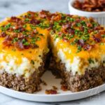 This Classic Comfort Loaded Potato Meatloaf combines hearty ground beef with creamy mashed potatoes, cheddar cheese, and crispy bacon, creating a satisfying and flavorful dish. Perfect for a family dinner, this recipe blends savory meatloaf with comforting loaded potato toppings for a unique twist on a beloved classic.