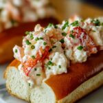 A classic New England lobster roll featuring tender cooked lobster meat tossed with mayonnaise, celery, lemon juice, and seasoning, served in toasted hot dog buns and finished with a drizzle of melted butter. This simple, flavorful sandwich is perfect for a quick and delicious seafood meal.