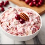 A delightful creamy cranberry salad combining tart fresh cranberries, sweet marshmallows, pineapple bits, and crunchy pecans all enveloped in a luscious blend of Greek yogurt, sour cream, Cool Whip, and vanilla pudding. This refreshing and festive salad is perfect for holiday gatherings or as a unique side dish.