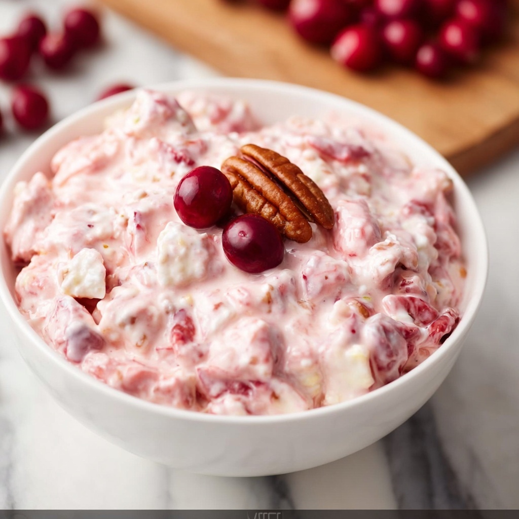 If you’re searching for a delightful dish that bursts with festive flavor and creamy texture, look no further than this Creamy Cranberry Salad Recipe. It’s a vibrant medley of tart cranberries balanced with sweet marshmallows, pineapple bits, and a luscious dressing made from Greek yogurt, sour cream, and cool whip. Each handful offers a perfect harmony of crunchy pecans, coconut flakes, and just the right hint of cinnamon and vanilla, making it a standout on any table. Whether it’s a holiday feast or a special gathering, this salad brings cheer in every creamy bite.