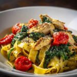 How to Serve Creamy Garlic Tomato Chicken and Spinach Fettuccine Recipe