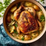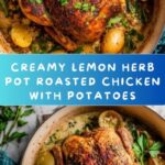 This Creamy Lemon and Herb Pot Roasted Chicken is a comforting and flavorful one-pot meal featuring a whole roasted chicken infused with fresh herbs, lemon, garlic, and a luscious creamy sauce. Tender baby potatoes cooked alongside the chicken soak up the rich, aromatic broth, creating a perfect balance of hearty and fresh flavors ideal for a family dinner.