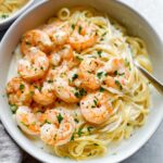 Reheat leftovers gently on the stovetop over low heat, stirring frequently and adding a little cream, milk, or reserved pasta water to loosen the sauce. Avoid microwaving directly as it can make the shrimp rubbery and the sauce separate. Take your time and it will taste almost as good as freshly made.