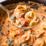 To reheat, warm the soup gently on the stove over low heat, stirring occasionally. If frozen, thaw overnight in the fridge before reheating. Once hot, stir in the heavy cream if you haven’t added it yet. Avoid boiling to preserve the creamy texture and tortellini integrity.
