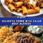 Creamy Velveeta Penne Pasta with Cajun Beef Alfredo Sauce Recipe