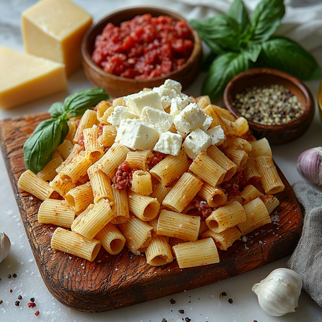 - Cook Pasta: Bring a large pot of salted water to a boil and cook rigatoni until al dente, about 10-12 minutes. Reserve ½ cup of the pasta water, then drain the pasta and set aside.