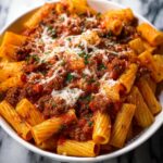 A comforting and creamy Velveeta Rigatoni pasta dish with a rich Italian beef marinara sauce, melted mozzarella, and perfectly cooked rigatoni. This hearty dinner comes together in about 40 minutes, combining flavorful ground beef, tangy crushed tomatoes, and creamy Velveeta cheese for a deliciously cheesy meal.