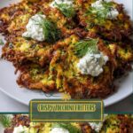 When it comes to garnishing your Crispy Mediterranean Zucchini Fritters Recipe, think fresh and simple. A sprinkle of extra chopped herbs like parsley or dill adds a pretty pop of color and amplifies the herbal freshness. A dollop of Greek yogurt or tzatziki on the side works wonders to add a creamy, cooling element that complements the fritter’s crispness and tangy feta.