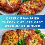 This recipe for Crispy Pan-Fried Turkey Cutlets offers a deliciously crunchy and flavorful meal featuring tender turkey cutlets coated in a seasoned Parmesan and Panko breadcrumb crust. Perfectly pan-fried to golden perfection, these cutlets make an easy family-style dish that is both satisfying and quick to prepare.
