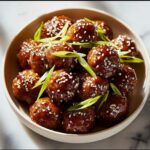 This Crockpot Honey Garlic Meatballs recipe is a simple and flavorful slow-cooked dish featuring tender meatballs coated in a sweet and savory honey garlic sauce. Perfect for easy weeknight dinners or gatherings, these meatballs are cooked low and slow to infuse maximum flavor and served garnished with sesame seeds and green onions for added freshness and texture.
