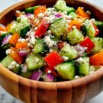 Elevate your Cucumber Pepper Salad – Fresh & Crunchy Recipe by serving it in individual glass jars or colorful bowls that show off the salad’s vibrant colors. For a fun twist, you can also stuff it into whole wheat pita pockets or use it as a fresh topping for tacos or flatbreads.