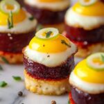 Deviled Egg Chicks are a delightful and creative twist on classic deviled eggs, perfect for Easter or spring-themed parties. These adorable appetizers feature hard-boiled eggs filled with a creamy yolk mixture and decorated with carrot beaks, olive eyes, and carrot feet to resemble little chicks. Easy to prepare and visually charming, they make a fun and tasty addition to any celebration.
