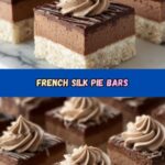 These French Silk Pie Bars combine a buttery, golden crust with a rich, creamy chocolate filling and a light whipped cream topping. Perfect for chocolate lovers, these bars offer the classic French silk pie flavors in a convenient bar form, ideal for serving at parties or as a decadent dessert treat.