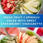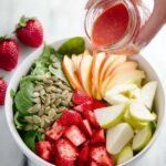 A refreshing and vibrant fruit and spinach salad featuring crisp apples, pears, and strawberries, topped with crunchy pumpkin seeds and dressed in a homemade strawberry vinaigrette. Perfect for a light, healthy meal or side dish.