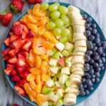 2. Prepare the fruit: Rinse all fruit thoroughly. Slice the strawberries, grapes, clementines, blueberries, apples (cored and cut into sixths, then sliced into 1/4″ thick pieces), and slice the banana, but add the apples and banana only when ready to mix with syrup to prevent browning.