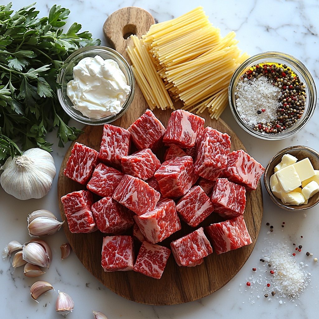 This recipe uses simple, familiar ingredients, each playing a crucial role in creating a dish packed with flavor and texture. From the juicy steak cubes to the rich Parmesan cheese, every element works together to elevate this meal.