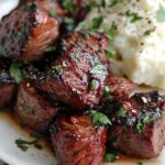 Consider plating the steak bites and mashed potatoes in a shallow bowl for a comforting, rustic vibe. For a fancier touch, stack the steak bites on top of the potatoes in a neat heap and drizzle any remaining garlic butter sauce around the plate. A sprinkle of crispy fried shallots or garlic chips can add a delightful crunch that elevates the dish’s texture.