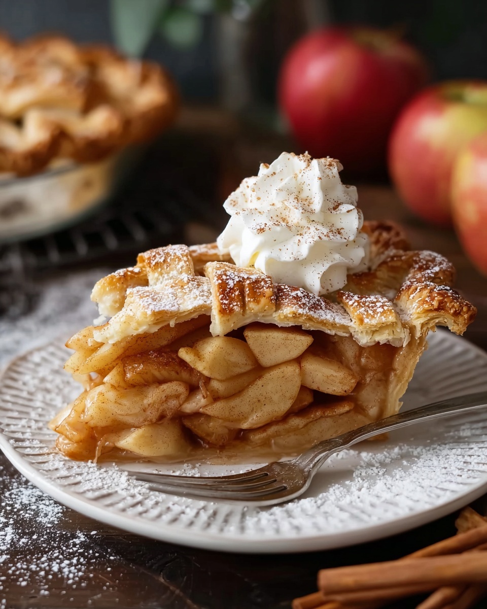 For a picture-perfect presentation and an extra touch of indulgence, try topping your pie slices with a dollop of fresh whipped cream or a scoop of vanilla ice cream. The creamy coolness wonderfully contrasts with the warm, spiced apples.