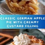 This traditional German Apple Pie features a deep-dish crust filled with tart apples mixed with warm spices and topped with a creamy custard-like mixture. Baked to golden perfection, it offers a harmonious blend of sweet and tangy flavors with a rich, velvety texture that is perfect for dessert or an indulgent treat.