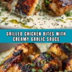 - Serve: Plate the grilled chicken bites and generously drizzle them with the creamy garlic sauce. Garnish with chopped parsley for a fresh touch and serve immediately.