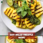 This vibrant and refreshing Grilled Pineapple recipe features juicy pineapple spears charred to perfection and topped with a zesty mint and lime sauce. Perfect as a healthy dessert or side dish, this recipe combines the sweetness of caramelized pineapple with the bright, aromatic flavors of fresh mint and lime for a delightful tropical treat.