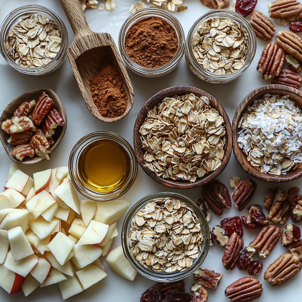 Gathering the right ingredients for this recipe is a breeze, and each one plays a starring role to build the perfect texture and flavor. From the rich olive oil that adds a silky touch to the pure maple syrup that brings natural sweetness, every component is there to lift your homemade granola to delicious heights.