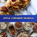 This homemade apple cinnamon granola is a deliciously crunchy and naturally sweetened breakfast or snack option. Featuring oats toasted to perfection with olive oil and pure maple syrup, and infused with warm cinnamon and vanilla flavors, it’s studded with chewy dried apples, crunchy pecans, coconut flakes, and tart dried cranberries. Perfect for topping yogurt, enjoying with milk, or eating by the handful, this granola combines wholesome ingredients and easy preparation for a healthy treat.